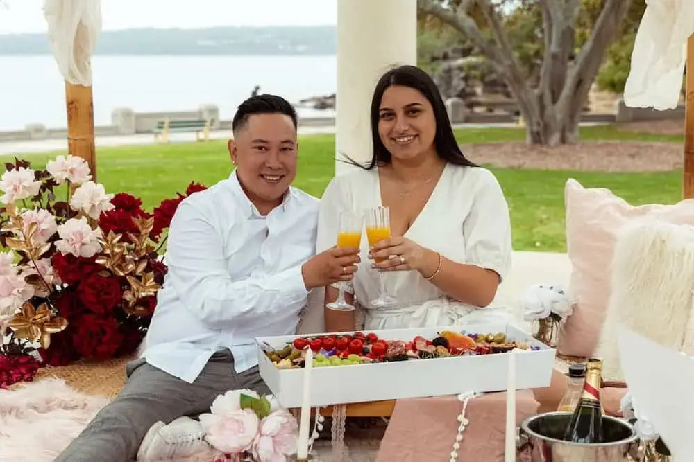 Her sister grabbed her bag, and Steven started leading them towards the proposal setting. Mary instantly freaked out and was telling Steven “there’s no way this is for me”. He told her it was all for her. Steven told Mary that she was the best thing that has ever happened to him and that he will love her forever. He grabbed her hand accordingly and got down on one knee, asking her to marry him. She said “YES!”. They celebrated by taking photos with a professional photographer, and enjoyed a grazing box in the beautiful Balmoral picnic proposal setting.
