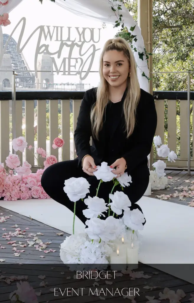 In 2015, two romance fanatics, Tania and Gloria, joined forces to create a proposal planning company with the perfect fusion of creatively romantic, thoughtfully designed and smoothly delivered proposals. Their collective experiences, projects and clients have involved some of the most influential people in the world at some of the most outstanding venues around the world. Tania and Gloria are passionate proposal planners that will scale trees, climb ladders, arrange all types of flowers, fabrics, timber and throws to bring your creative vision to life.