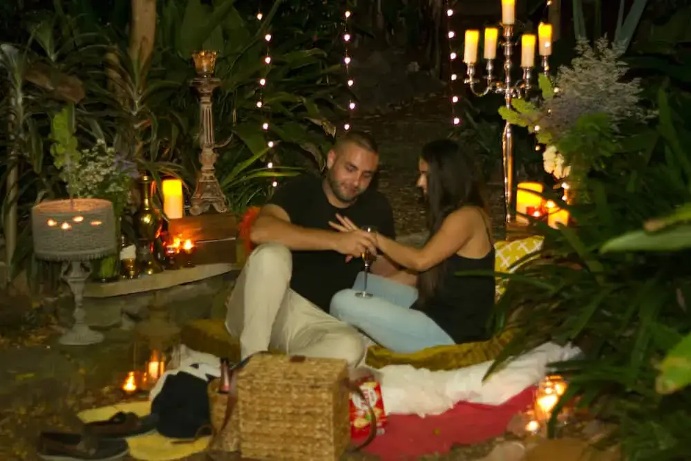Instead of walking to a function centre I lead her down a set of hidden stairs through what she thought was a short cut. I turn her around and in the corner of the garden is a perfect boho picnic, set with fairy lights, cushions, champagne, snacks, lamps, candles, everything! As soon as she saw it she knew and I got down on one knee and asked her to marry me. Finally, I got a scream, a kiss, a “yes I will marry you” and a high five, all captured on camera! It was the perfect proposal!