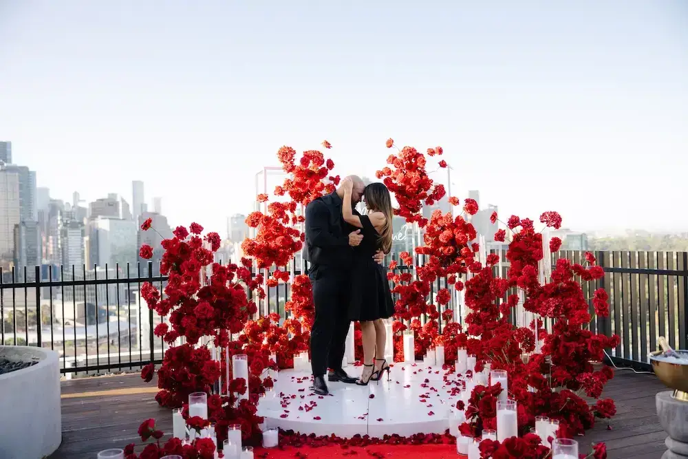 Red roses will never go out of style. And in 2026, they’re making a strong comeback in luxury proposal styling.
